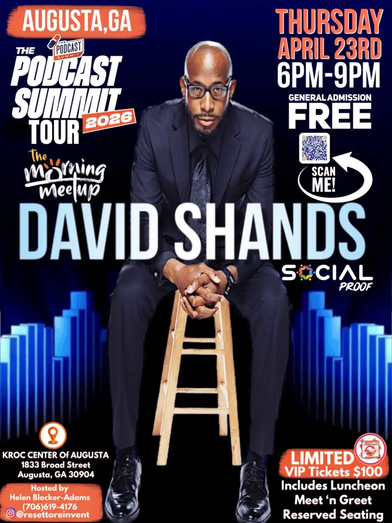 “David Shands has been my podcast mentor/coach for over a year now. He’s never been to Augusta and is looking forward to it. He’s called the King of Podcasting and is one of the most dynamic, down-to-earth people I have ever met, ” said Ms. Adams.