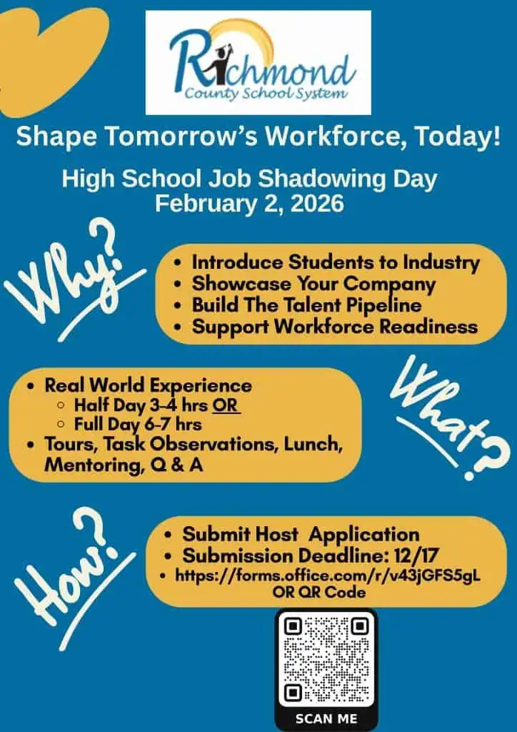 The Augusta Metro Chamber of Commerce is calling on businesses to sign up for a job shadowing opportunity. The annual event, set for Groundhog Day on Feb. 2, is coordinated by the Richmond County School System (RCSS).