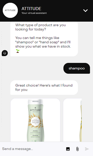 With the Attitude AI Bot, I could find shampoo and could click on the product to add it to my cart.