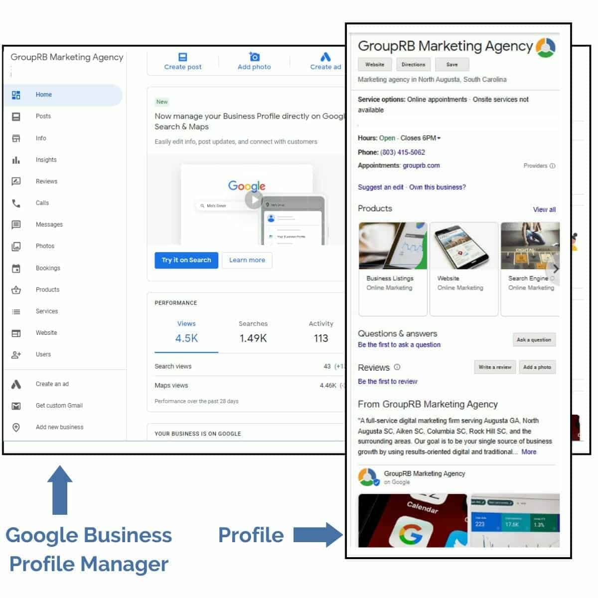 To manage your business, you need to create a Google business profile manager account. You can see both in the image below.