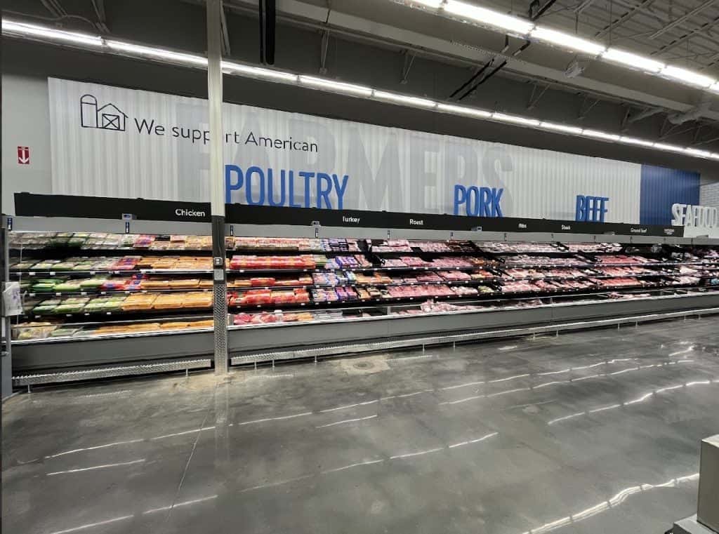 The most notable aesthetic changes included updating the paint from green to the signature Walmart blue, plus a digital media board in the deli. Additional improvements include an expanded digital space, which has also moved from the back of the store toward the front, giving customers easier access to online pickups. New grocery items have also been added, such as new bakery selections and vegetarian options in the meat and frozen department.