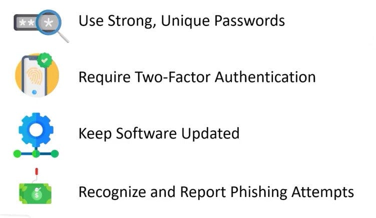 “Making sure that your password is 16 characters or longer, making sure that that password is truly unique to that site,” added Jay. “The reason that is important is because the bad guys know that people often reuse passwords, so that if I learn your password in one breach, I might use that to attempt other accounts imitating you.”