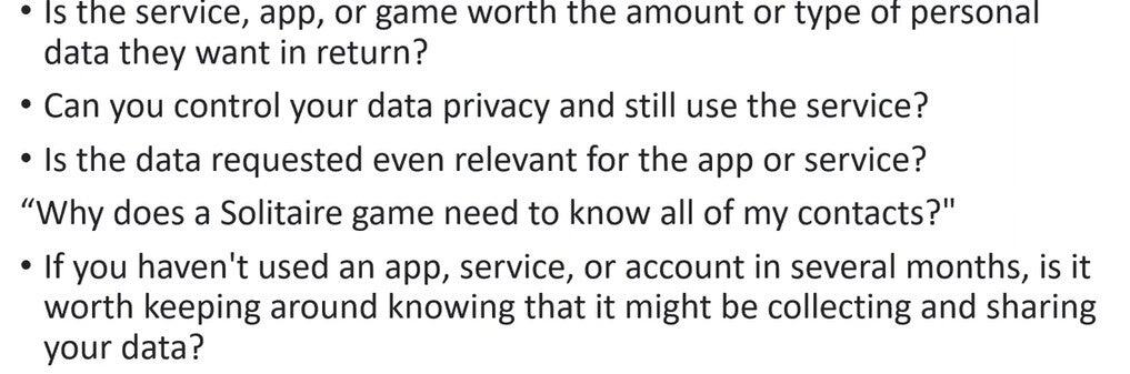 “If you’re downloading a new app or opening up a new online account of some kind, you’re probably giving some kind of access to your personal information, said Cooke. “It may be asking you to allow it to access your photos, maybe asking for permission to allow it, get information on your contacts, your location, all those different things.”