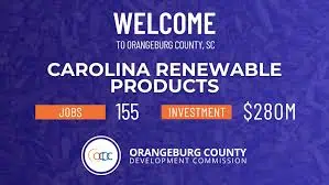 “In South Carolina, agribusiness is a major economic driver, and today’s announcement from Carolina Renewable Products is further proof of the industry’s strength. This $280 million investment, creating 155 new jobs, will greatly impact Orangeburg County, and we look forward to seeing the company succeed in the years ahead,” he said.
