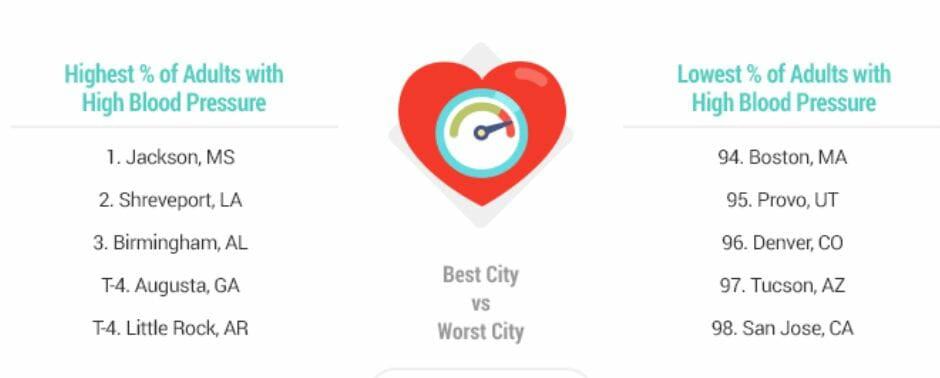 Augusta was tied for fourth in the percentage of adults with high blood pressure and overall ranked third in Health Consequences, which also factored in rates for diabetes, heart disease, high cholesterol, and death from obesity-related problems.