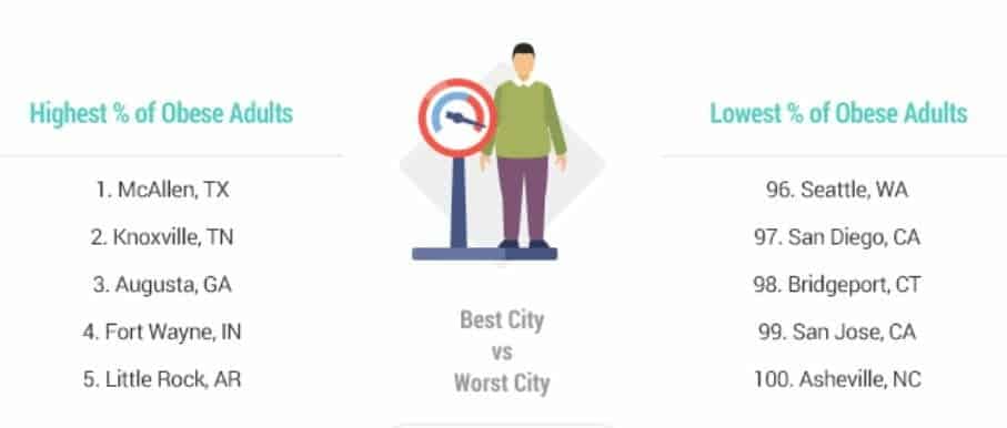 The health experts who did the ranking evaluated the 100 highest-populated cities in three categories: Obesity & Overweight, Health Consequences, and Food & Fitness.