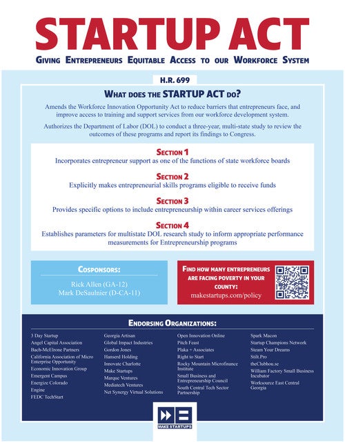 One such effort was our introduction of the Startup Act, HR 699, by Congressman Allen, and cosponsor, Congressman Mark DeSaulnier. This legislation aims to amend the Workforce Innovation Opportunity Act to enhance support for entrepreneurs. As part of our trip, we were also able to meet with Senator Warnock’s staff to raise awareness both of the bills and also the vast impact made by our organization and others to support entrepreneurs across the state and nation. This significant step was closely followed by our presentation at the summit on workforce policy and entrepreneurship, where we were able to share our experience and perspectives on workforce administration and policy. We led an engaging discussion with several key takeaways:
