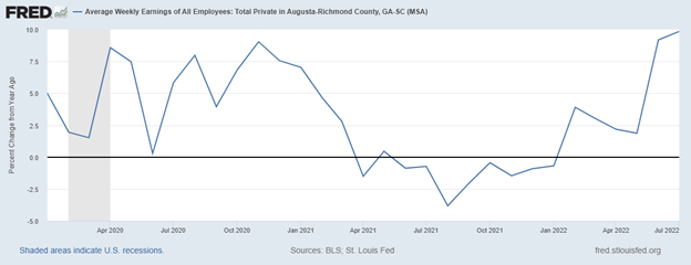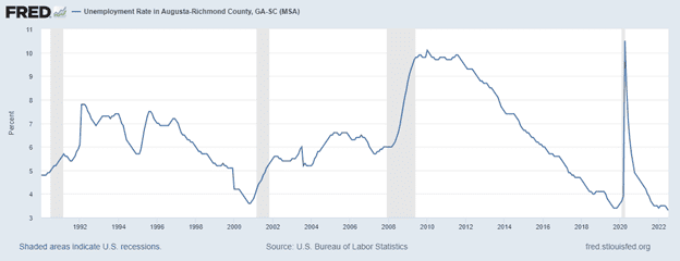 Overall, employment is up 1.8 percent from a year ago, although it still stands below pre-pandemic levels. It seems the labor market in Augusta remains strong.