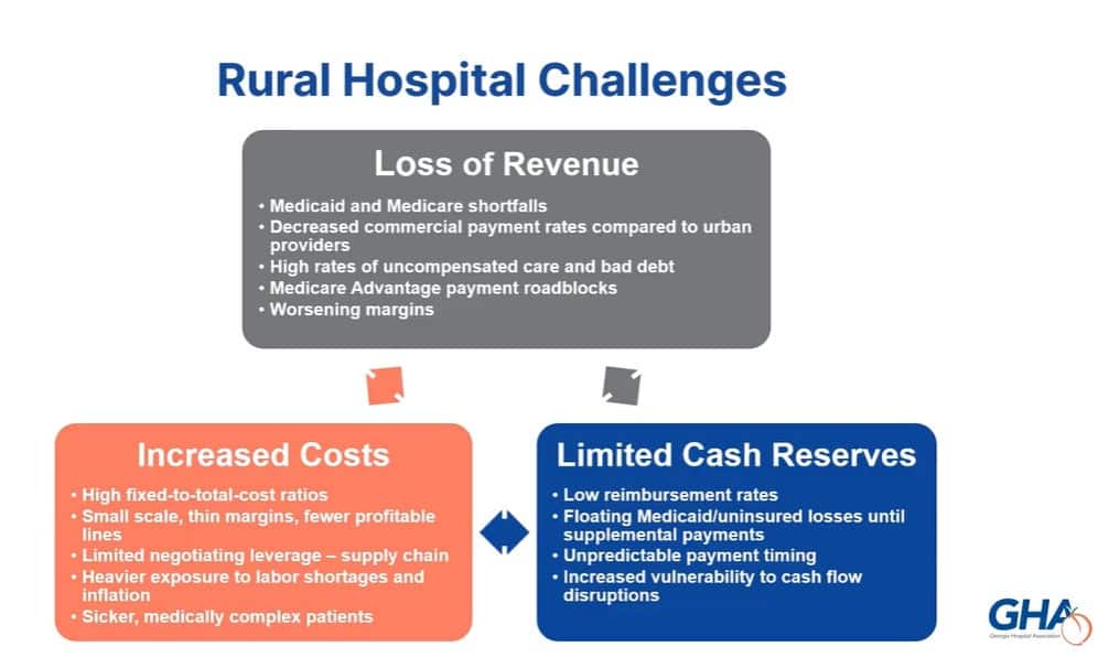 “The healthcare business model in rural Georgia is broken. It doesn’t work,” he said. “If you tried to go to a bank with that business plan of ‘Here’s our cost and here’s our revenue,’ they would laugh you out of the door. So, we’ve got to use money to transform delivery models in a way that allows facilities to have a margin and stay open.”