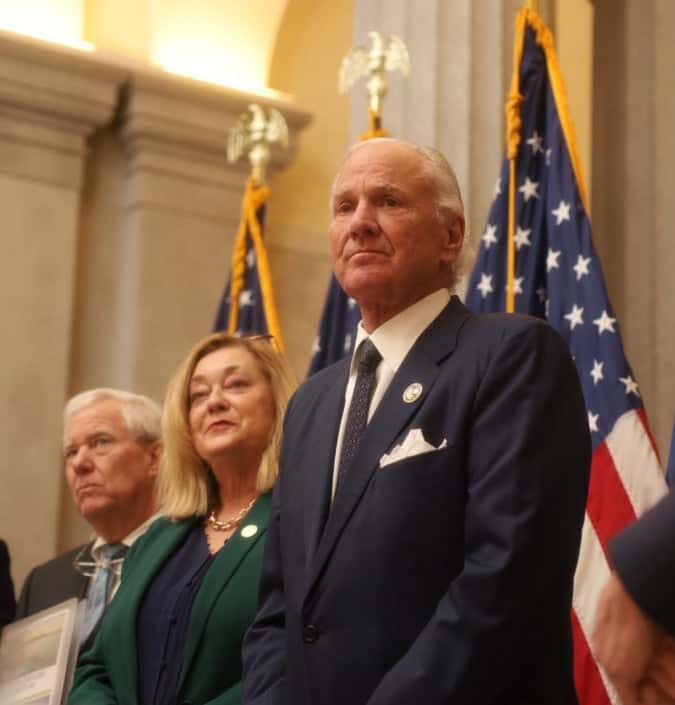 SC Governor Henry McMaster was flanked by South Carolina Department of Environmental Services (SCDES) Director Myra Reece and Rob Devlin, SCDES Assistant Chief of the Bureau of Water. They were joined by Rep. Bill Hixon (R-District 83 encompassing parts of Aiken and Edgefield counties), who serves as the Co-Chair of the Surface Water Study Committee.